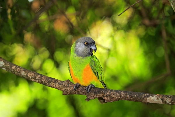 תוכי סנגל הוא אחד ממיני התוכים ממשפחת ה-Poicephalus. זהו תוכי בגודל בינוני, שאורכו נע בין 23 ל-26 ס”מ, ומשקלו נע בין 115 ל-170 גרם. צבעיו הייחודיים כוללים ראש אפור, חזה בצבע צהוב-כתום, וגוף ירוק עז. זנבו קצר, והמקור החזק שלו מותאם לפיצוח זרעים ואגוזים.