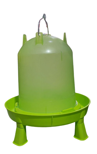 כלי המים לתרנגולות ועופות בנפח 14 ליטר עם רגליים מספק פתרון שתייה נוח, יציב ומוגבה,