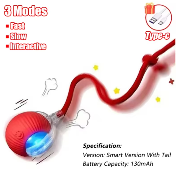 כדור אינטראקטיבי חכם לחתולים עם זנב – צעצוע מתגלגל נטען USB
